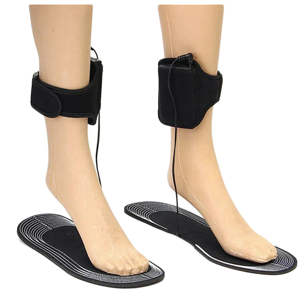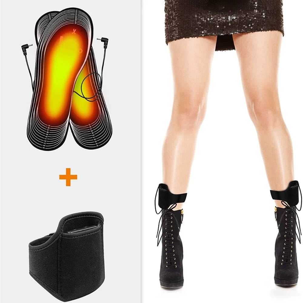 Når innleggssålene kobles til USB-forlengelseskabelen, kan de drives via en oppladbar strømkilde med 2A-utgang eller en 5V / 2A mobillader
